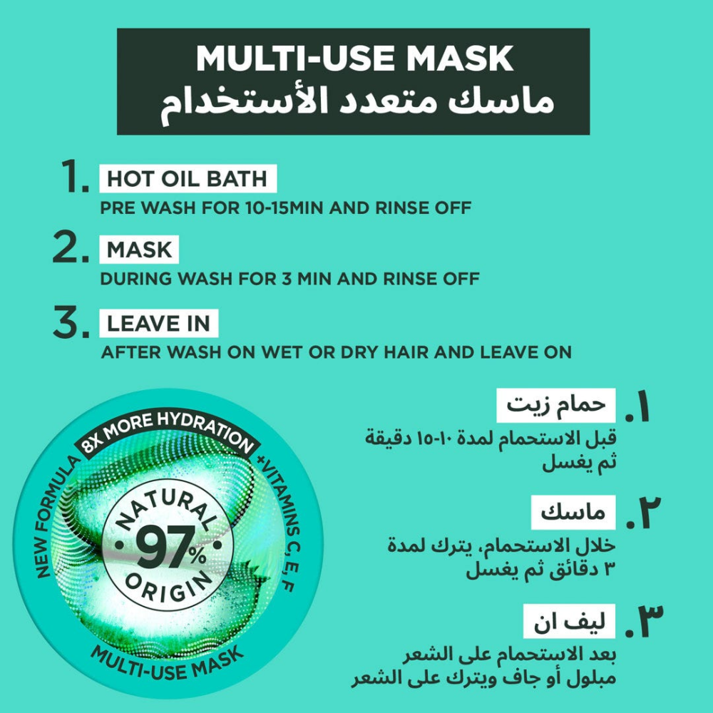 يتم تطبيق القناع على شعر نظيف ورطب، ويترك لمدة 5-10 دقائق ثم يشطف جيدًا.