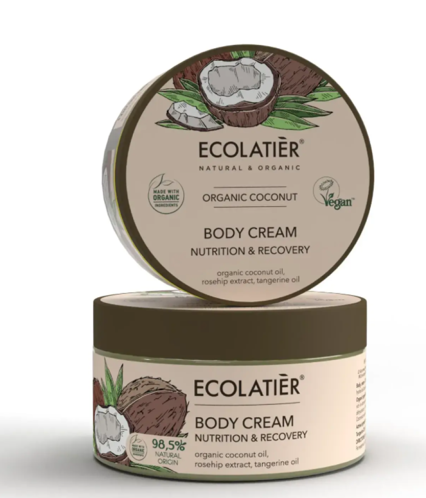 ايكولاتير كريم الجسم بخلاصة جوز الهند العضوي لتغذية البشرة 250مل - تغذية مثالية لبشرتك