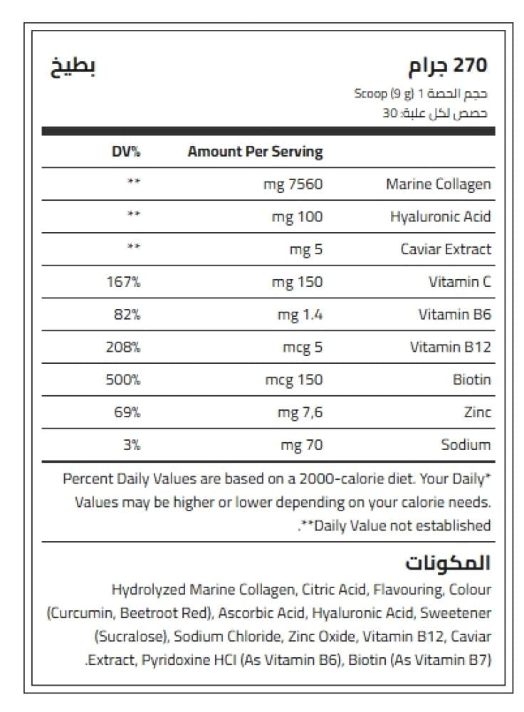 بودي بيلدر الكولاجين البحري و الكافيار بنكهة بطيخ 270جم - تعزيز صحة البشرة والشعر بودي بيلدر الكولاجين البحري و الكافيار بنكهة بطيخ هو منتج متكامل ...
