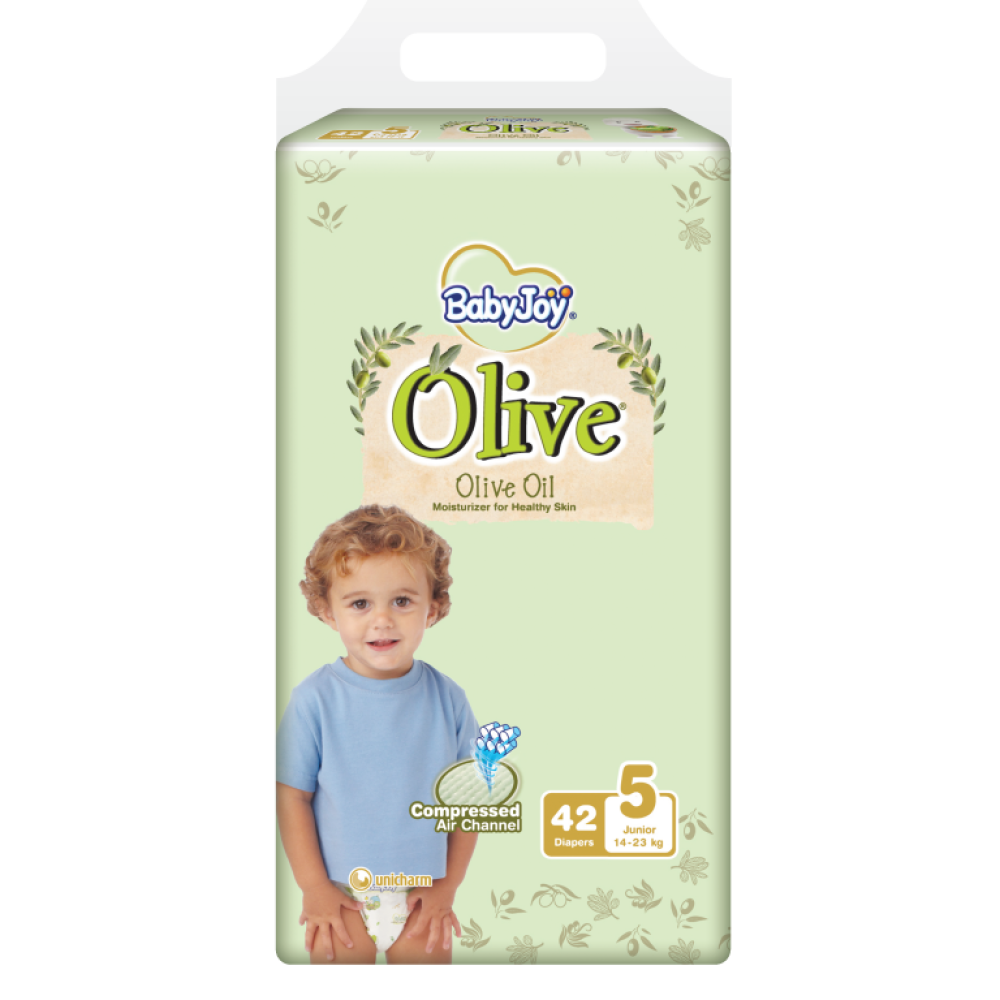 بيبي جوي اوليف بزيت الزيتون مقاس (5) العبوة الضحمة 42 حفاض - راحة مثالية لبشرة طفلك تقدم حفاضات بيبي جوي اوليف بزيت الزيتون راحة وأماناً لا مثيل له...
