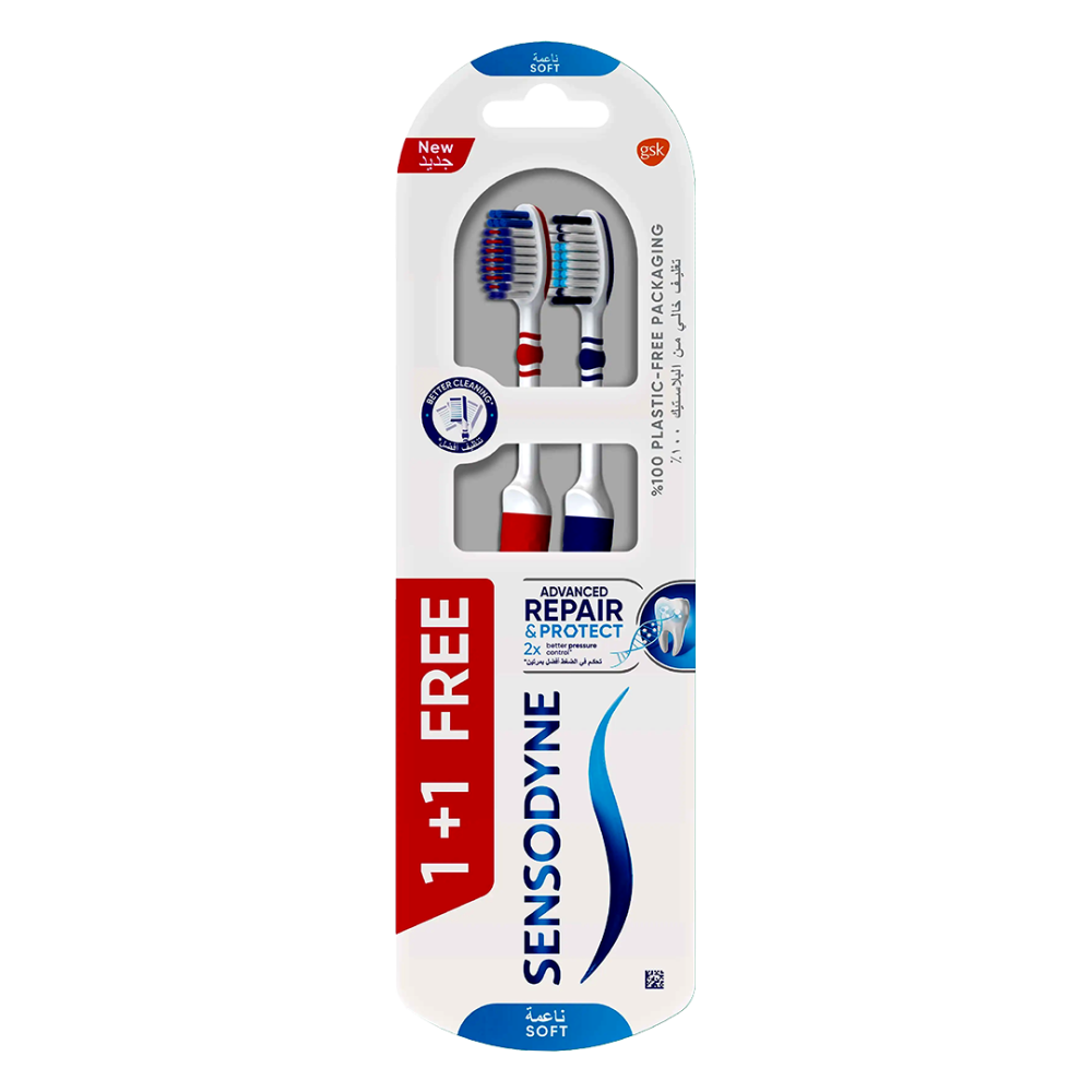 سنسوداين فرشاة أسنان ترميم و حماية ناعم 1+1 مجاناً - العناية الفائقة بأسنانك