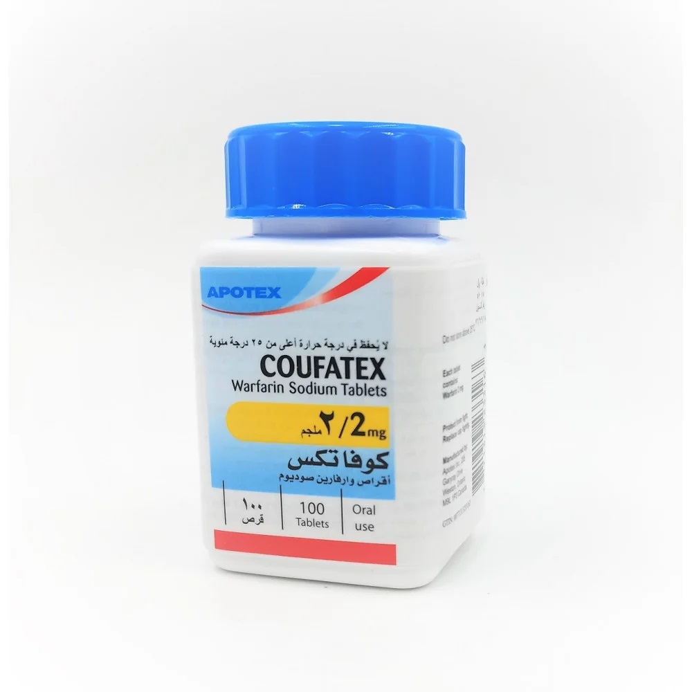كوفاتكس 2مج 100قرص كوفاتكس هو دواء يستخدم لتقليل خطر تجلط الدم في الأوعية الدموية. ينتمي إلى فئة مضادات التخثر، ويستخدم بشكل شائع للوقاية من السكتا...