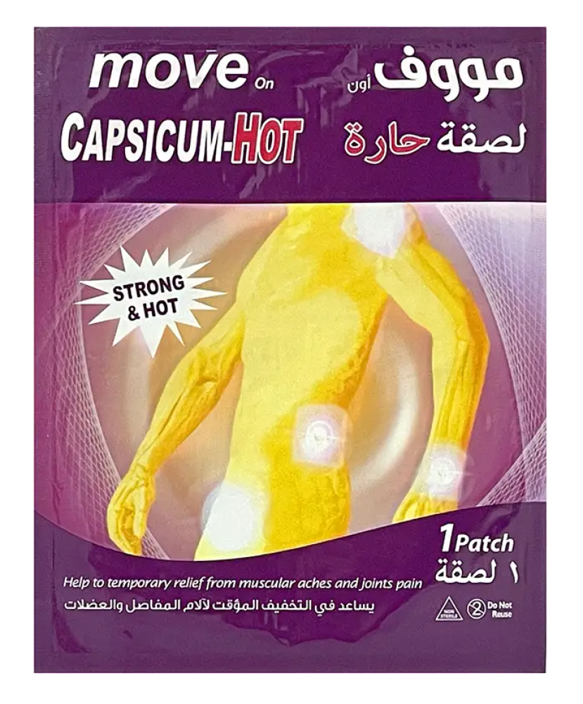 مووف اون لصقة حارة لتخفيف آلام العضلات والمفاصل 1حبة مووف اون لصقة حارة هي منتج طبي مصمم لتخفيف آلام العضلات والمفاصل. تحتوي على مستخلص فلفل حار فع...