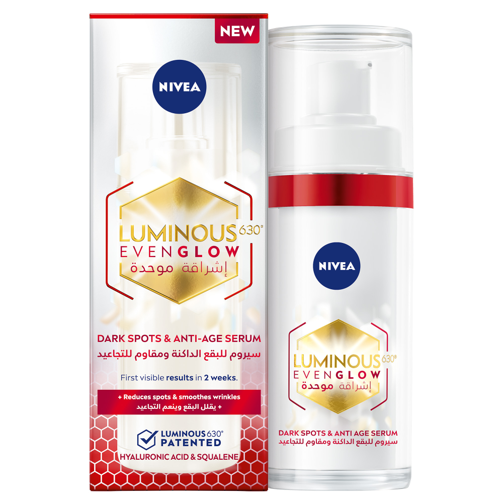 نيفيا لومينوس ايفن جلو سيروم للبقع الداكنة ومقاوم للتجاعيد 30مل - إشراقة طبيعية بشرتك نيفيا لومينوس ايفن جلو سيروم هو الحل المثالي للتخلص من البقع ...