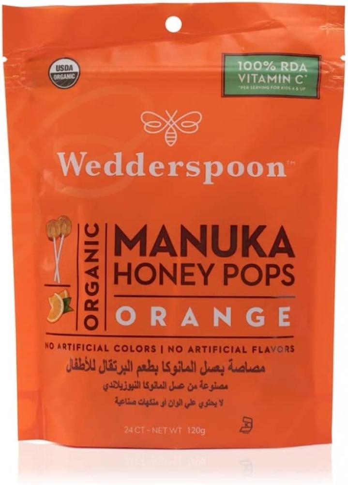 مصاصة تحتوي على عسل المانوكا بطعم البرتقال، 24 قطعة.