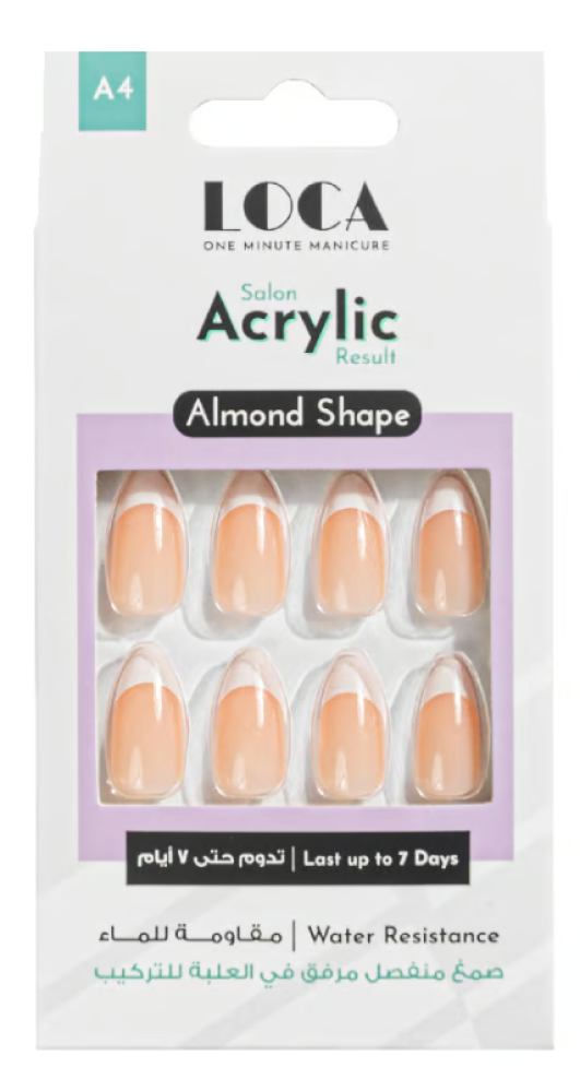 Loca Acrylic Nails Natural French Almond Shape is the perfect choice for those looking for beautiful and elegant nails. These nails are characterized by ease of use and fit, making them suitable for daily wear or special occasions. They give you a natural and attractive appearance, boosting your confidence. If you're looking for long-lasting nails that add a touch of elegance, Loca is the ideal choice for you.