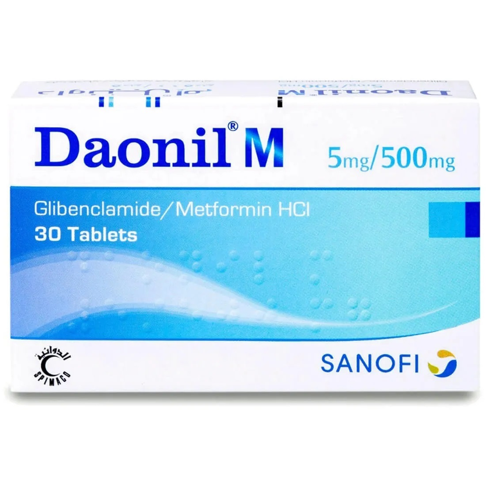 Daonil M 5/500Mg contains the active ingredient Glibenclamide, which works by increasing insulin secretion from beta cells in the pancreas. This effect helps improve the body's response to insulin and reduces insulin resistance. Additionally, using this medication can help reduce the risks of complications associated with diabetes, such as cardiovascular diseases. It is considered an effective option for patients who cannot control their blood sugar levels through diet and exercise alone.