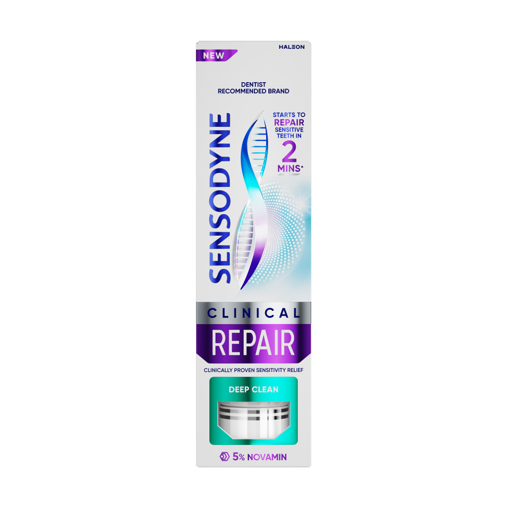 Use Sensodyne Toothpaste Clinical Repair Deep Clean twice daily as part of your oral care routine.